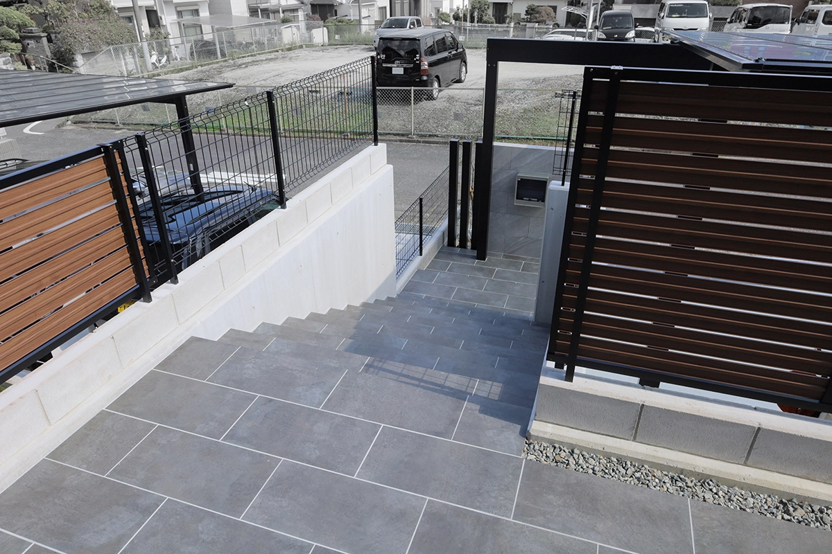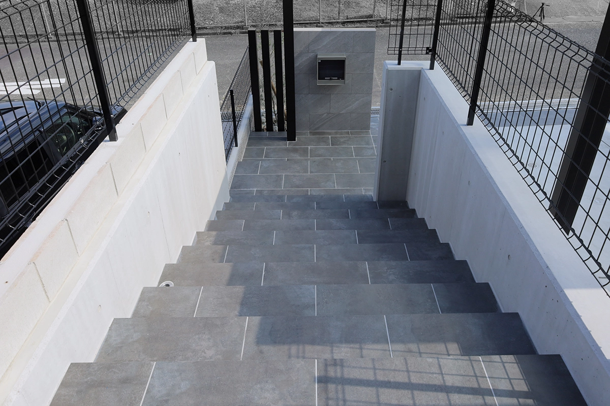 階段・壁:タカショー セラレバンテ(同仕様)+ユニソン ジャスティ(シャイングレー)