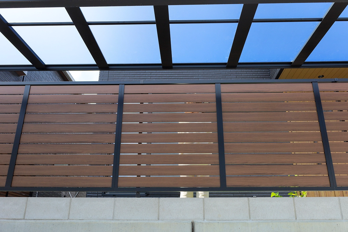 目隠しフェンス(LIXIL フェンスAB YS3型)を設置し、外からの視線を遮りながらも風と光を通すバランス設計としました。