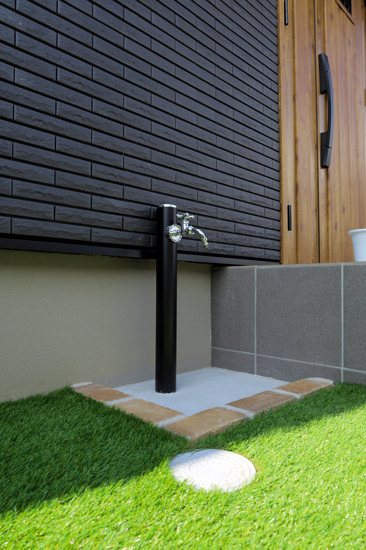 玄関横にも別途立水栓を設け、日常的な使い勝手を向上させました。
