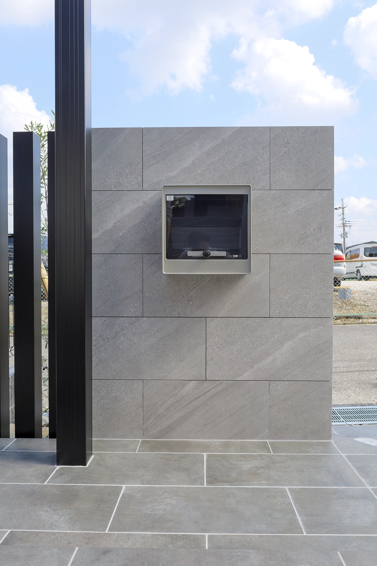 門柱:タイル貼り仕上げ/タカショー アヴェルサ(300×600角/シルバー)〈目地なし施工〉