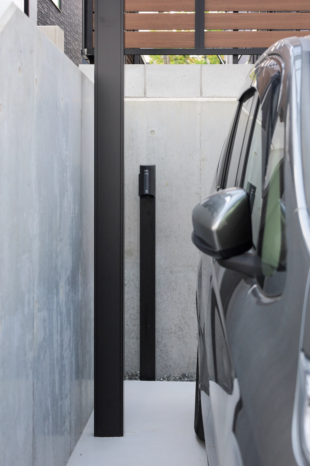 EV充電ポールを設置し、将来的な電気自動車への対応も万全。