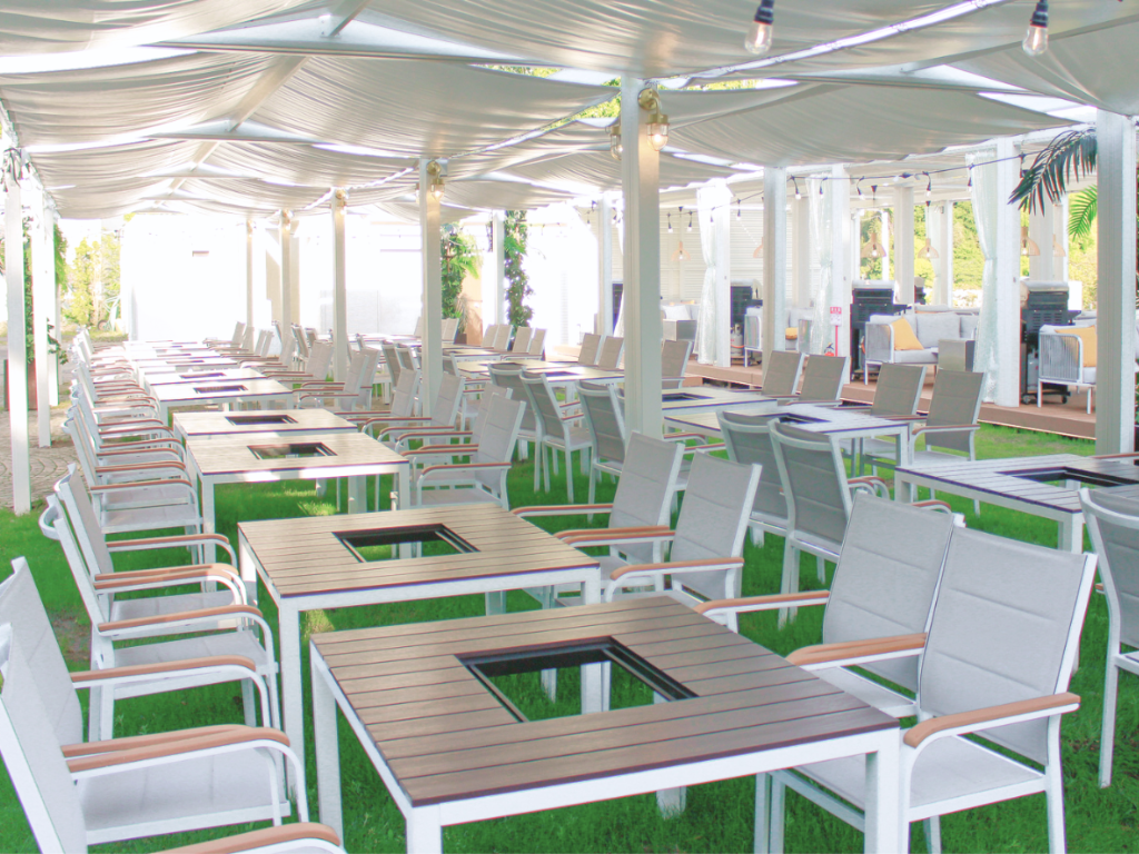 ホテル屋上テラス、リゾート施設の専用BBQエリア、商業モールのアウトドアダイニングなど、多様な案件に対応。家具のみの納品、一部施工、イベント時のスポット協力など、ニーズに応じて柔軟にご相談いただけます。