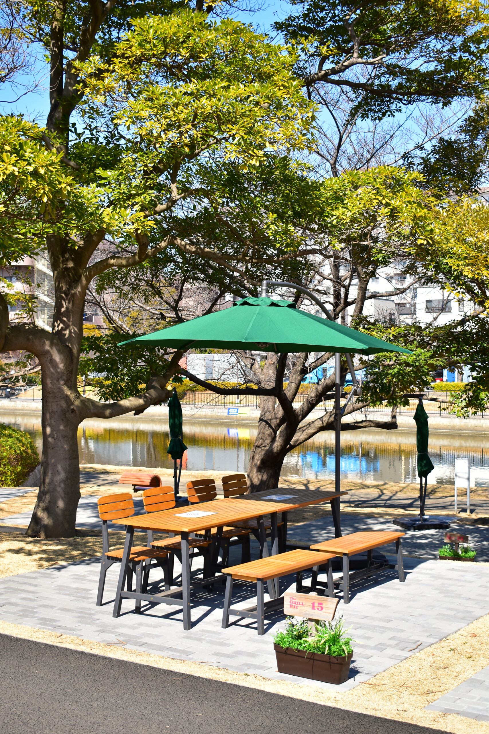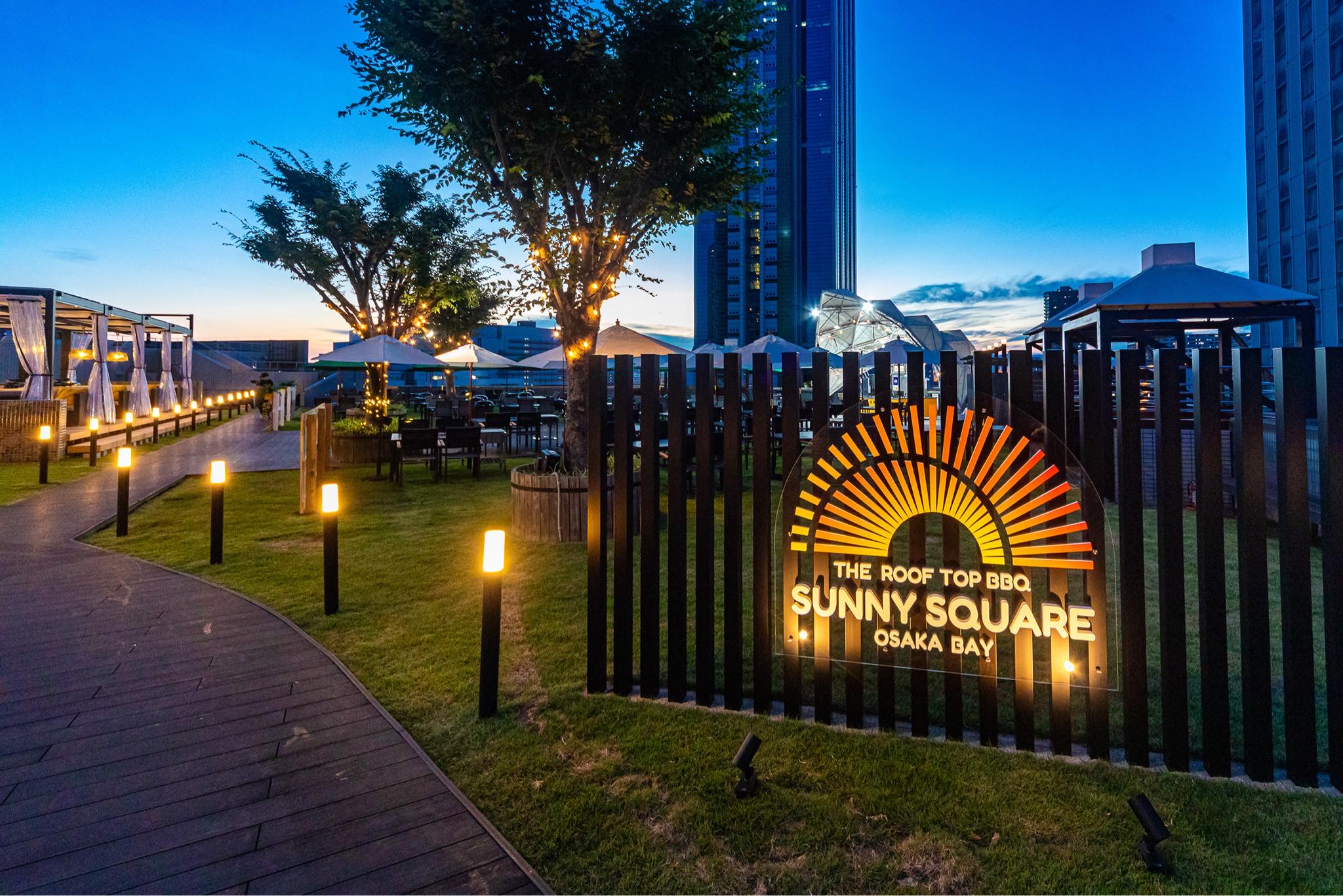 商業施設に併設された快適なBBQスペース