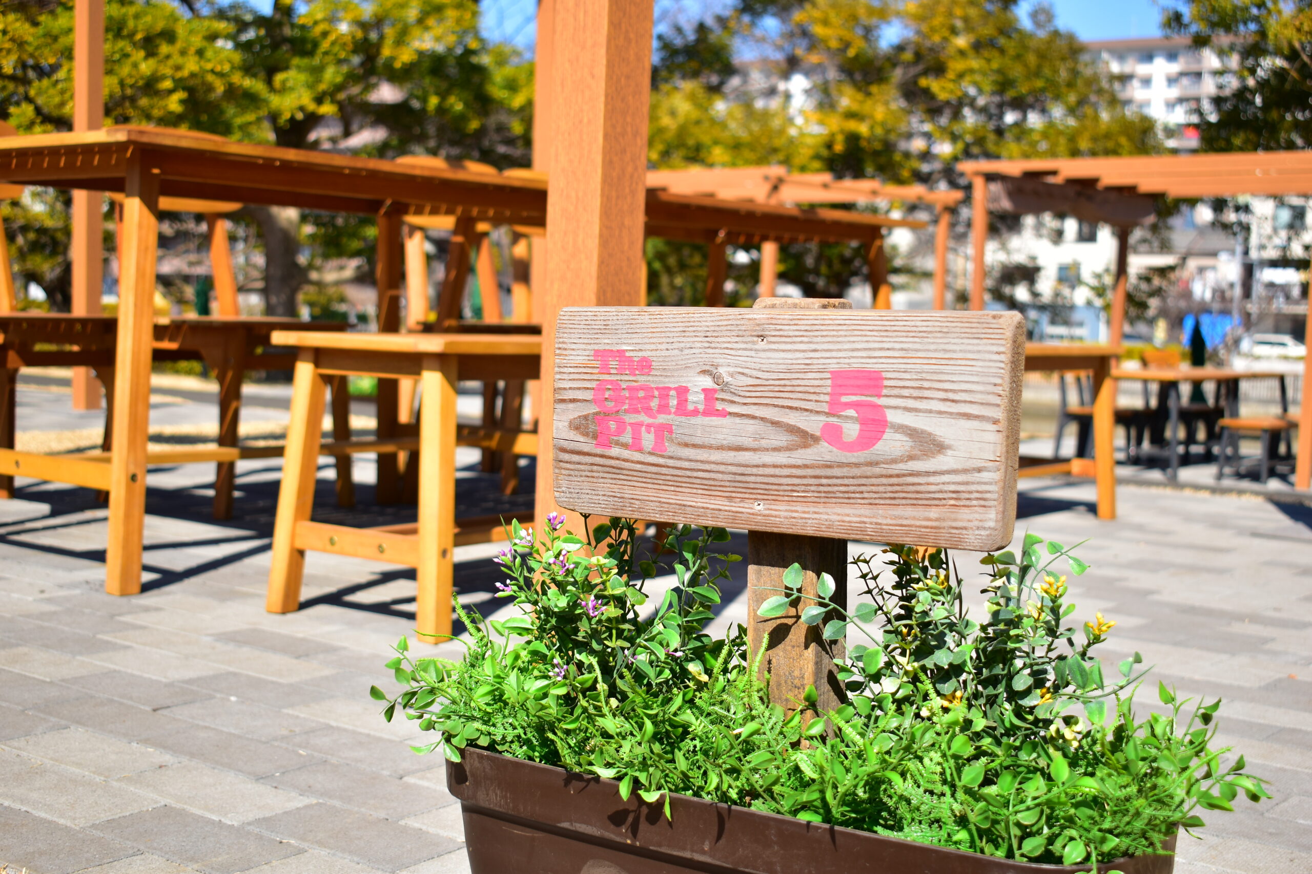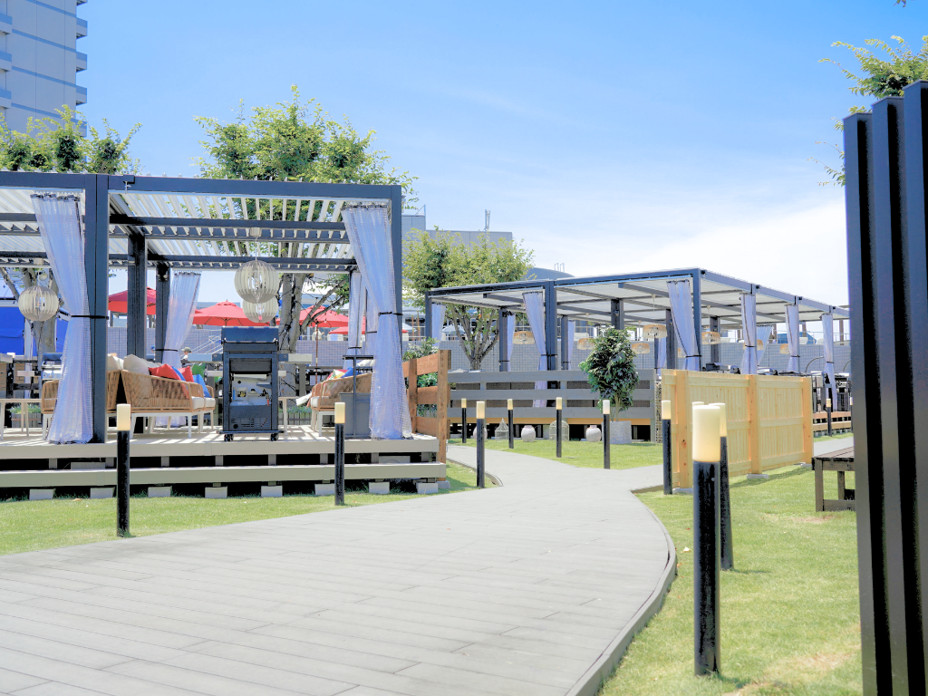 商業施設に併設された快適なBBQスペース