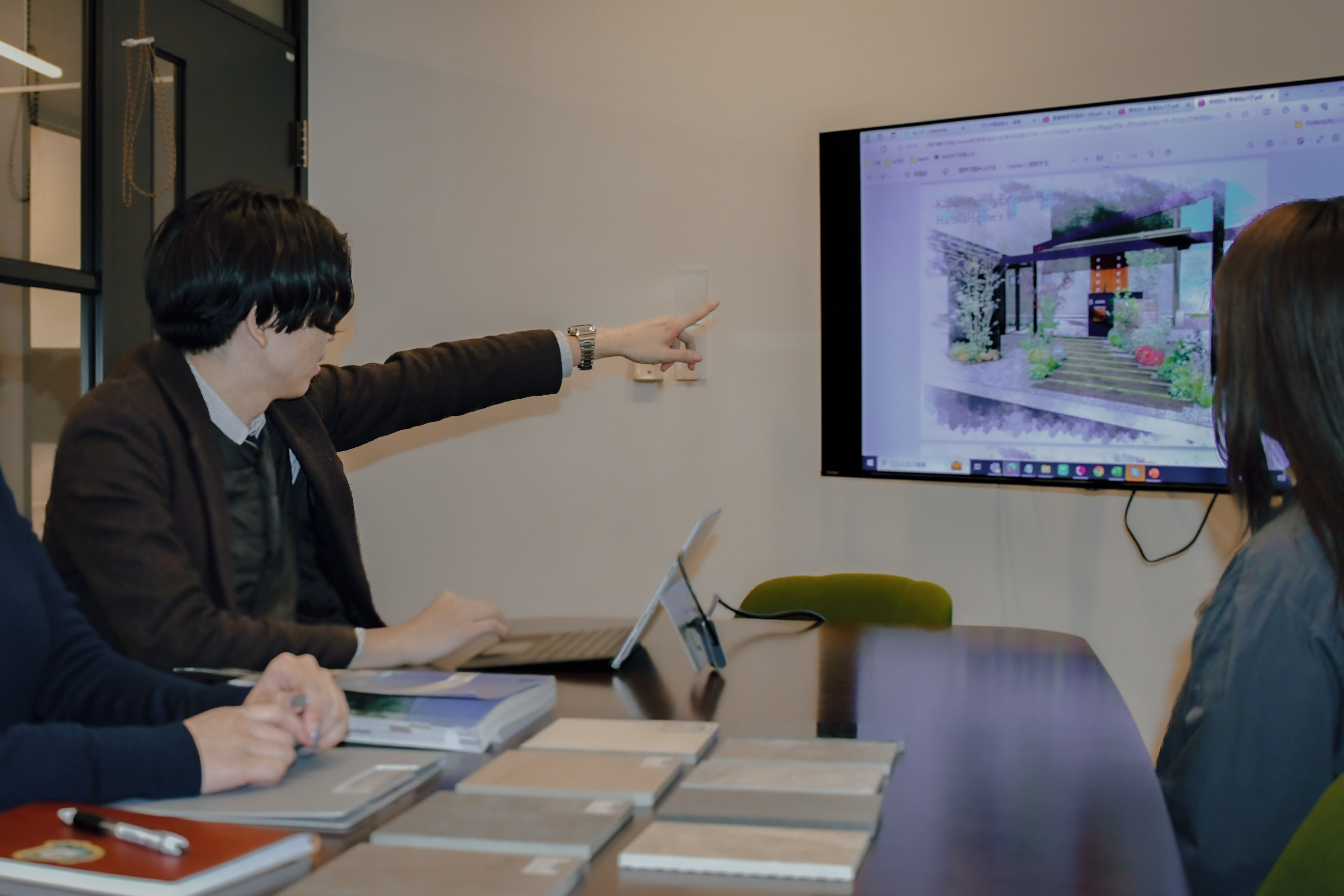 一日のスケジュールは日によって異なりますが、商談を数件、その他に着工済みの現場の確認、職人さんとの打ち合わせ、お客様に提出する資料の作成などが主な業務内容です。