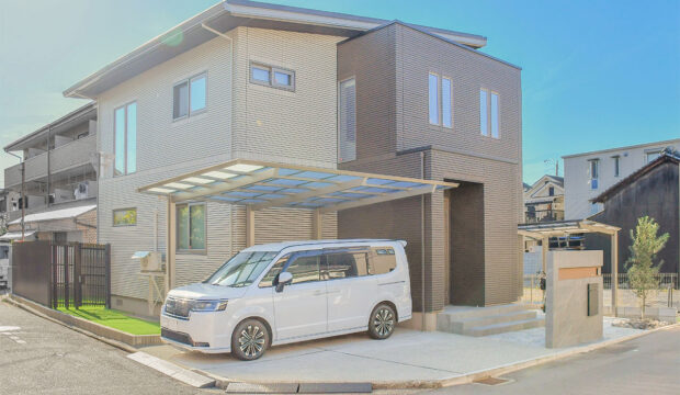 広い駐車スペースに合わせて使い勝手の良い3台用のカーポートを採用しました。