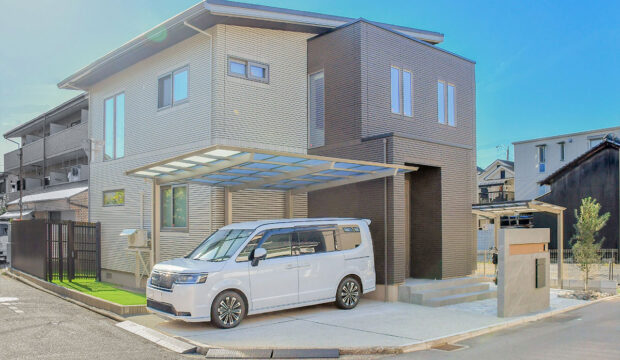 外観全体をひとつのトーンでまとめ、住まいとの調和を図りました。