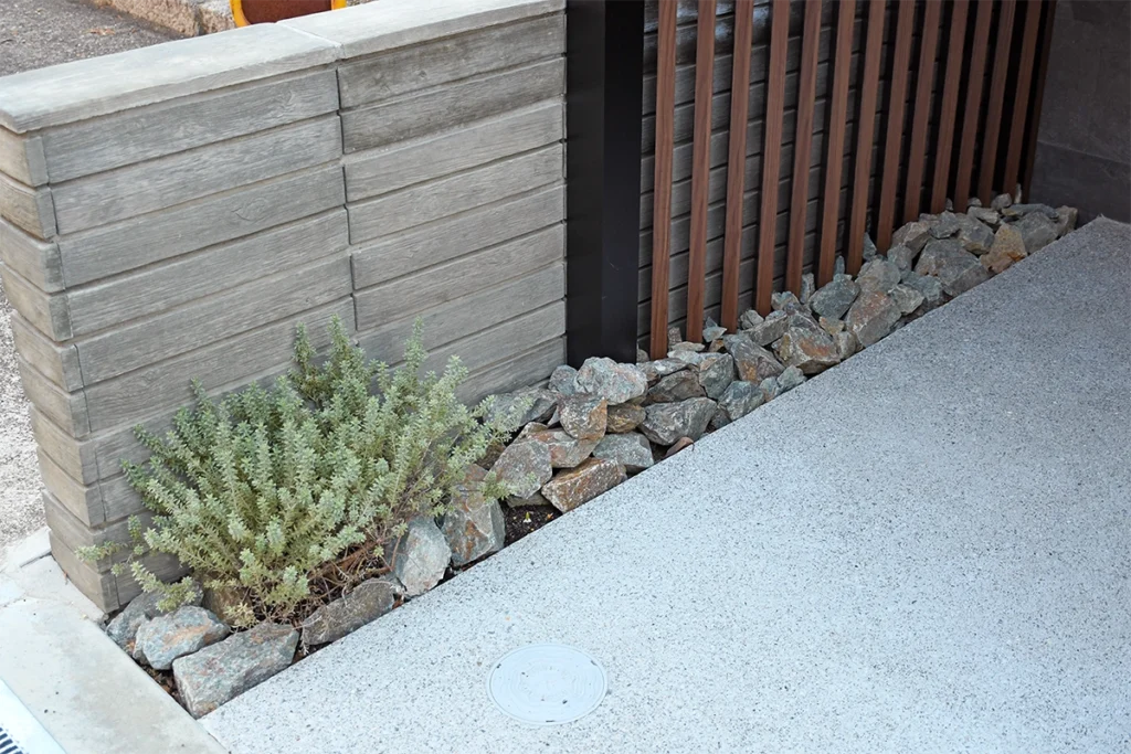 石の質感と相まって、季節ごとの変化を感じられる小さな庭となっています。