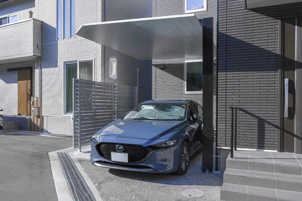 カラーをカーポート屋根と合わせ、外構全体に統一感を持たせています。