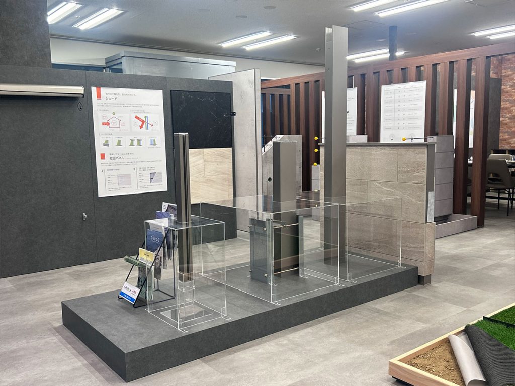 商品展示:門柱やフェンスなどの素材を実寸大で比較し、実際の質感や色味をご確認いただけます。