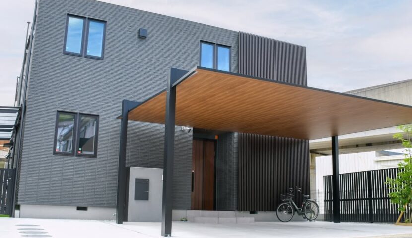 モノトーンに木調の屋根が映える、シンプルモダン外構 和歌山県和歌山市M様邸