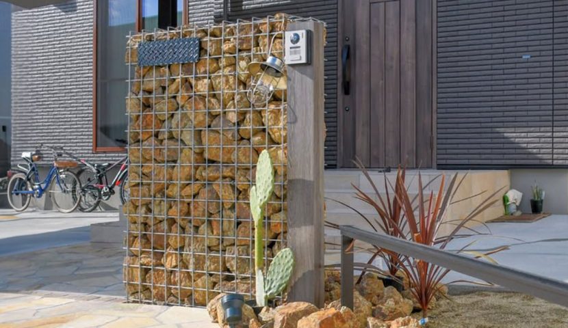ガビオンが目を惹く、自然素材と直線美が調和したオープン外構 和歌山県海南市 K様邸