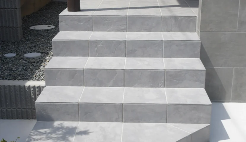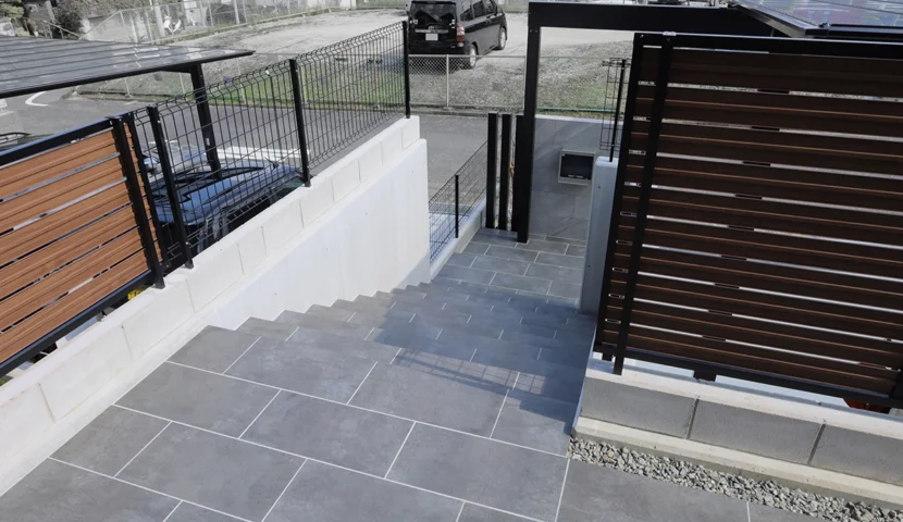高低差を活かす憩いの空間。グレートーンのモダン外構 大阪府富田林市 M様邸
