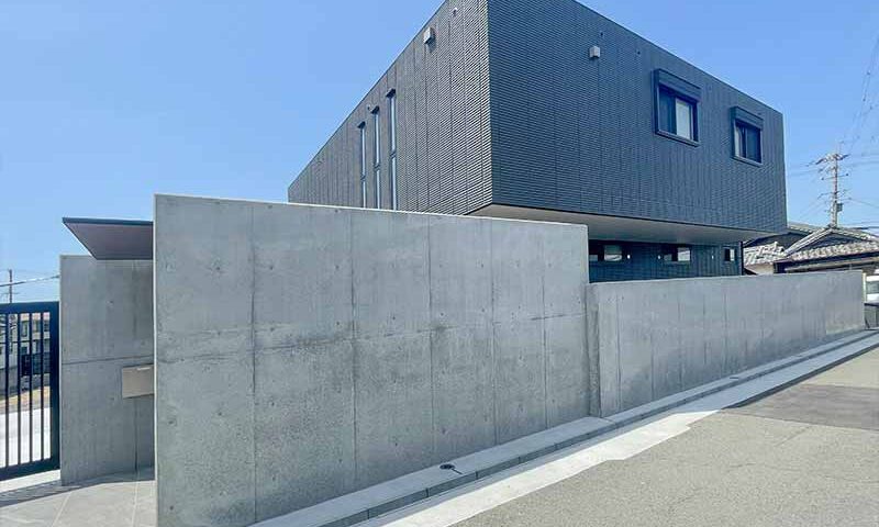 RC擁壁と建物が調和、無骨でタフなクローズ外構 大阪府泉南市